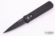 This 721 Godson from Pro-Tech Knives features a black coated spear point blade with swedge. The handle is comprised of a black anodized aluminum frame with a black coated stainless steel tip up clip. Includes original box and paperwork. Excellent condition.