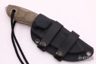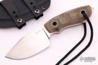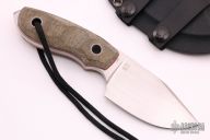 The Jesper Voxnaes designed Bob from Boker Plus Elegance is yet another inspired design. It's a tank of a knife, with a 7 mm thick AUS-8 steel blade! The flat blade grind allows for balanced cutting performance and power. The contoured, three-dimensional canvas Micarta handles offer a secure grip and the tang extends past the scales to create a breaker point. Included is a Kydex sheath. The Bob is a hefty knife with a great feel and an impressive presence. Comes with original sheath. Excellent condition.