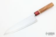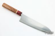 This Gyuto from Shinichi Watanabe features a stainless clad steel blade with a hidden tang construction. .163" Blade Stock. 2.01" Blade Depth. The handle features wood hilt nicely complemented by a Honduras wood grip. This is a fantastic piece that is razor sharp. New from Maker.