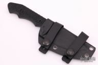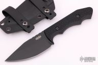 This JB-480 Custom fixed blade by Brous Blades has a black blade and black G-10 scales, .185" blade stock and 1.504" blade depth, full tang construction. The D2 tool steel blade boasts fierce cutting power. The sure-grip handle has G10 scales with effective spine-running grooves. This dynamic knife includes a secure lightweight Kydex sheath with IWB loops and a belt clip. Excellent condition. 1 of 1