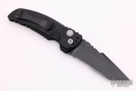 This EX-A01 by Hogue Knives is an Allen Elishewitz design, it features a black tanto partially serrated 154CM blade with notched thumbrest. The handle is black aluminum, tip up or down reversible black stainless steel clip. Has safety. Comes with Hogue box and papers. Excellent condition.