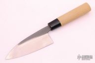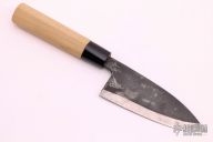 The Ajikiri 105 from Shinichi Watanabe features an iron clad white steel blade with a hidden tang construction. .124" Blade Stock. 1.59" Blade Depth. The handle features dark synthetic hilt nicely complemented by a HO wood grip. This is a fantastic piece that is razor sharp. New from Maker.