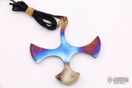 This Phoenix necklace by Elsa Fantino is made from anodized titanium with buffalo horn scales with brass pins. This can be removed quickly and used as a knuckle. Excellent condition.