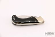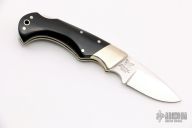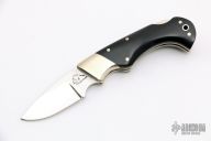 Classic Samson design lockback with polished blade, nickel silver bolsters, and black paper micarta handle scales. Brass liners and deep choil. Excellent condition. Comes with original box.
