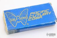 Balisong USA started manufacturing butterfly knives in the late 1970s, then changed its name to Pacific Cutlery in the early 1980s, before finally becoming Benchmade. The earlier knives featured a wide variety of custom blade designs (many of which were hand ground by master knifemaker Jody Samson, well known for making the swords in the movie Conan the Barbarian), as well as a number of exotic inlays for the handles (ivory, prehistoric ivory, scrimshawed ivory, mother-of-pearl, ebony, tropical woods, etc.)