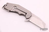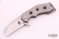 This titanium framelock flipper features a stonewash finish blade with a sharpened front edge, and stonewashed milled titanium scales. Tail clip. Nice blade seating, lockup, and detent. Comes with a zippered case. Excellent condition.