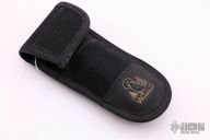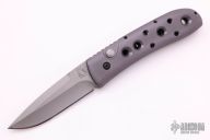 This is a Woodard Knives Fer De Lance side opening automatic with a bead blasted blade and anodized aluminum frame. Stainless steel clip, tip up carry. Excellent condition. Comes with original sheath.