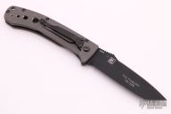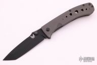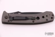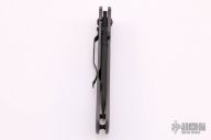 This 760BK LFTI framelock folder is a classic Lum design and features a black coated CPM-M4 stainless steel tanto blade with single thumbstud. Handle is bead blasted titanium with milled holes, black stainless steel tip down clip, and lanyard hole. Has some scuffs on the frame, otherwise excellent condition. First Production Run 735/1000