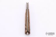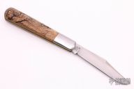 This Grand Daddy Barlow by Schatt & Morgan features a satin finished blade with nail nick. The handle has stainless steel bolsters, "lightning wood" covers, brass liners and stainless steel spring. Excellent condition. Comes with original box. 1 of 25