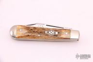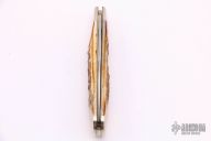 This Fire & Water slipjoint by Schatt & Morgan features a mirror finished blade with nail nick. The handle has nickel silver bolsters, burnt stag covers, brass liners and stainless steel spring. Excellent condition. Comes with original box. 1 of 50