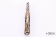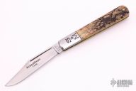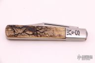 This Grand Daddy Barlow by Schatt & Morgan features a satin finished blade with nail nick. The handle has stainless steel bolsters, "lightning wood" covers, brass liners and stainless steel spring. Excellent condition. Comes with original box. 1 of 25