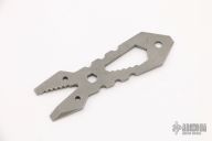 "Made of CPM 154, this versatile pocket wrench design harkens back to the classic century old alligator wrenches. Featuring a 1/4 hex opening and also a large screwdriver/pry tip. Wrench sizes include 1/4, 5/16, 3/8, 7/16, 1/2, and 9/16 in both open and closed ended configurations."