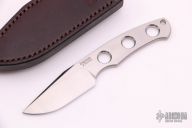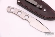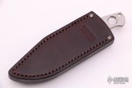 This knife was designed by Enrique Pena and manufactured by Reate knives.  This knife features a satin finished drop point blade with a full tang construction.  Includes a brown leather sheath with a belt clip.  The tip is slightly blunted otherwise the knife is in excellent condition.