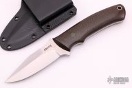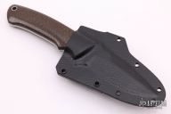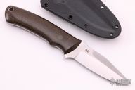 This Model 28 from Dan Crotts features a satin finished blade with a full tang construction. .124" blade stock and .992" blade depth. The handle features burlap micarta scales and a G10 pin.  Includes kydex sheath with belt loop set up for horizontal carry. New from maker.