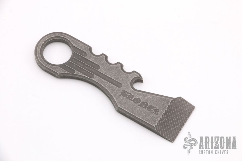This Broner by Jason Stout is made from .204" thick tumbled titanium. 3.75" overall. Excellent condition.