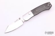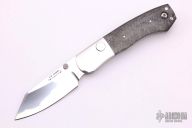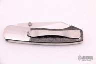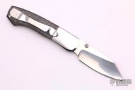 This Scott Sawby Combat Utility Button Lock folder features a hand rub satin finsihed blade with with dual thumbstuds. The handle has dovetailed and mirror polished stainless steel bolsters with integral liners, carbon fiber scales, tip up mirror polished stainless steel clip and backspacer, clip is left/right reversible. Has a few VERY light scratches, otherwise excellent condition. Comes with a zippered case.