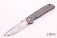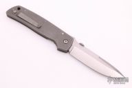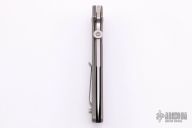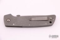 This ATCF from Bob Terzuola features a drop point blade with swedge, thumbdisc and notched thumbrest. The handle is comprised of a full titanium frame and lockside liner over black backspacer, titanium tip up clip. Scuffs and scratches on  frame, otherwise good condition.