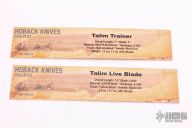 Hand-to-hand combat is an engagement between two or more persons in an empty-handed struggle or with hand-held weapons such as knives, sticks, or projectile weapons that cannot be fired. Proficiency in hand-to-hand combat is one of the fundamental building blocks for training the modern soldier. Purpose: The Talim Combatives Fixed Blade System is a life-saving device. It is a purpose-built tool for cutting and piercing flesh in an offensive/defensive situation. It’s built to cut through typical clothing/gear that would be in aforementioned situations in order to complete the task at hand and potentially save one’s life. Key Features: The live blade is ground to a zero edge, then back-beveled to create the final edge. This makes for an extremely sharp final edge. The handles are press fit 1/16thof an inch into the blade and then glued in place with a high-temperature tolerant rubberized adhesive. This aids in removing potential hardware that could loosen/corrode over time. It also makes for extremely strong handle retention. The handles are 3D textured and contoured to aid in grip and comfort – even when wet or covered in foreign materials. The knife has a curved and contoured pommel that indexes perfectly for extremely fast draw times from the sheath system. The training blade is ½” shorter than the live blade so as not to create training deficiencies when striking a target. The momentum sheath system is built for extreme speed and retention under most circumstances. Reasoning: The reasoning behind designing this system was to create a blade package that could be carried comfortably daily and trained with in the same way you carry it. I designed this system to be carried “other strong side (left side) reverse grip.” Carrying the system “other strong side” allows the normal carry of a sidearm on the strong side while having another tool at your disposal on the left side. Sources: Information and masterminding was conducted with many different and varied people from different backgrounds in Combatives, some of which include Commando Krav Maga, Sayoc Kali, DEVGRU, Army SF, Army CAG, and SWAT. Experience: My personal experience that has helped me build this system includes Sayoc Kali, Integrated Combatives (http://www.americantacticalshootinginstruction.com/), Commando Krav Maga, MMA, Mui Thai, and Gung Fu. The Talim Combatives Fixed Blade System includes the following: Talim Live Blade Talim Aluminum Trainer Momentum Sheath System for both Live and Trainer Blades SPECIFICATIONS Blade: .15625 Thick, S35VN Steel, DLC Black Stonewash Finish Handle: .1875 Thick, Black G10 Inlayed Handle w/ Diamond Texture Overall Length: 7.5” Blade Length: 3.5” Weight: 5.7OZ Color: Acid Stonewash Momentum Sheath System Comes with COA. New from maker.