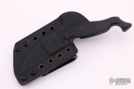 Hand-to-hand combat is an engagement between two or more persons in an empty-handed struggle or with hand-held weapons such as knives, sticks, or projectile weapons that cannot be fired. Proficiency in hand-to-hand combat is one of the fundamental building blocks for training the modern soldier. Purpose: The Talim Combatives Fixed Blade System is a life-saving device. It is a purpose-built tool for cutting and piercing flesh in an offensive/defensive situation. It’s built to cut through typical clothing/gear that would be in aforementioned situations in order to complete the task at hand and potentially save one’s life. Key Features: The live blade is ground to a zero edge, then back-beveled to create the final edge. This makes for an extremely sharp final edge. The handles are press fit 1/16thof an inch into the blade and then glued in place with a high-temperature tolerant rubberized adhesive. This aids in removing potential hardware that could loosen/corrode over time. It also makes for extremely strong handle retention. The handles are 3D textured and contoured to aid in grip and comfort – even when wet or covered in foreign materials. The knife has a curved and contoured pommel that indexes perfectly for extremely fast draw times from the sheath system. The training blade is ½” shorter than the live blade so as not to create training deficiencies when striking a target. The momentum sheath system is built for extreme speed and retention under most circumstances. Reasoning: The reasoning behind designing this system was to create a blade package that could be carried comfortably daily and trained with in the same way you carry it. I designed this system to be carried “other strong side (left side) reverse grip.” Carrying the system “other strong side” allows the normal carry of a sidearm on the strong side while having another tool at your disposal on the left side. Sources: Information and masterminding was conducted with many different and varied people from different backgrounds in Combatives, some of which include Commando Krav Maga, Sayoc Kali, DEVGRU, Army SF, Army CAG, and SWAT. Experience: My personal experience that has helped me build this system includes Sayoc Kali, Integrated Combatives (http://www.americantacticalshootinginstruction.com/), Commando Krav Maga, MMA, Mui Thai, and Gung Fu. The Talim Combatives Fixed Blade System includes the following: Talim Live Blade Momentum Sheath System SPECIFICATIONS Blade: .15625 Thick, S35VN Steel, DLC Black Stonewash Finish Handle: .1875 Thick, Black G10 Inlayed Handle w/ Diamond Texture Overall Length: 7.5” Blade Length: 3.5” Weight: 5.7OZ Color: Acid Stonewash Momentum Sheath System Comes with COA. New from maker.