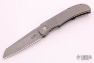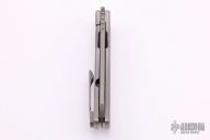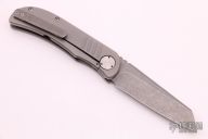 This LEXK Framelock from Burger Knives features a tumble finished blade with notched front flipper and thumbrest. The handle is comprised of milled and bead blasted titanium frame with tumbled titanium tip up pocket clip. Comes with original papers dated 03/11/16. Excellent condition.