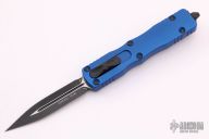 This Dirac OTF automatic by Microtech features a D/E black blade with a standard edges. The handle has a blue aluminum with stainless steel tip down clip and hardware. Serial number 5336 and dated 06/2020. Comes with original box and papers. Excellent condition.