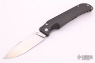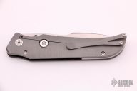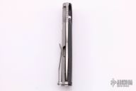 This Ranger from Jason Guthrie features a hand rub satin finish drop point harpoon blade with swedge, single thumb stud and notched thumbrest. The handle is comprised of a carbon fiber and textured and bead blasted titanium frame over a floating titanium backspacer, tip up pocket clip. Numbered 71 inside frame. Excellent condition.