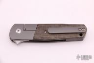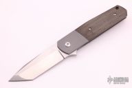 The EZE (EZ Enforcer) by Alliance Designs is a solid EDC performer, designed with Ray Laconico's distinctive minimalist design style. This model sports a satin finished tanto blade and a titanium frame and green canvas micarta scales. Clean lines accentuate the smooth contoured handle, which rests perfectly in the hand for comfortable use. Excellent Condition. Comes with original box and zippered case.