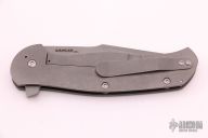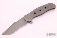 This Lancer is a Collaboration between Ray Laconico and Michael Vagnino. This knife features a tumble finished recurve blade with false top edge and flipper. The handle has a tumble finished titanium frame with matching tip up clip. Titanium barrel spacers and lanyard pin at the butt. Nice detent, blade seating and lockup. Excellent Condition.