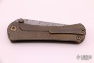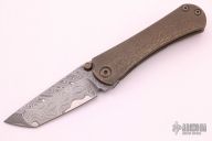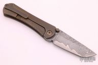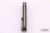 This SBKF by Borka Blades features a Chad Nichols CTS-XHP core San Mai Damascus blade with dual thumbstuds. The handle has an anodized and bark finished titanium frame with a matching tip up clip. Nice detent, lockup and blade seating. Comes with zippered case and COA dated 2018. Excellent condition.