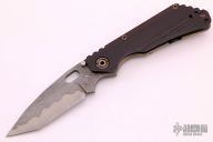 This DDC SNG features a Chad Nichols CTS-XHP core San Mai Damascus blade with thumbhole. The handle has a stepped anodized titanium frame with stepped Yucatán Rosewood front scale, tip up matching titanium clip. Nice detent, lockup and blade seating. Comes with a velcro case. Excellent condition.