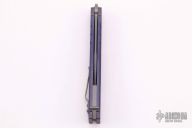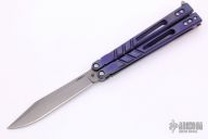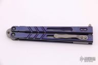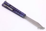 This Alpha Beast Balisong from Blade Runner Systems (BRS) features a tumble finished clip point blade. The handle is comprised of milled and anodized titanium with T latch on pommel. Excellent condition. Comes with original box and papers.