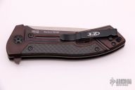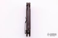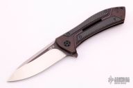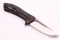 This 0801CF Rexford Limited Edition Copperhead Flipper #0598has a two-tone satin and black M390 stainless steel drop/spear point blade. Handle is anodized titanium with carbon fiber overlays, black finished stainless steel tip up (RH/LH) clip, and lanyard hole. Excellent condition. Very nice work. Comes with original box and papers.