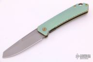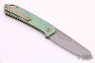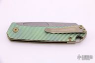 This OEM Slim is a Richard Rogers Design and features a bead blasted blade. The handle is milled and anodized titanium with blasted titanium backspacer, hardware and tip up clip. Nice detent, lockup and blade seating. Comes with original packaging and brown leather slip sheath. New condition.