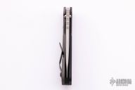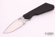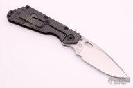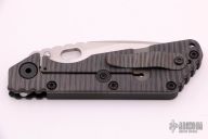 This Mick Strider SMF Fatty framelock folder features a stonewashed blade with thumbhole and notched thumbrest. The handle has a black aluminum and flamed titanium frame with titanium clip, tip up carry. Jimping on blade spine. Nice lockup, detent, and blade seating. New condition.