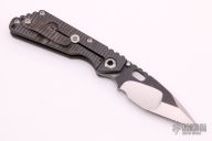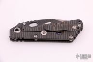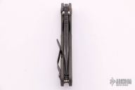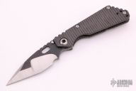 This SNG framelock folder by Mick Strider features a two-tone nightmare ground blade and a flamed titanium frame and tip up titanium clip. Includes a "Lock Bar Stabilizer" for maximum reverse lock retention. Nice detent, lockup and blade seating. New condition. Comes with a velcro case.