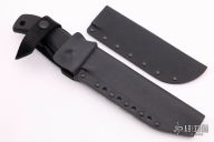 The ATAK Thing, like all Mad Dog knives, is made of Starrett 496-O1 high carbon tool steel. Hardened, then selectively tempered, the blades have a Rockwell C-scale hardness of 62 at the edge (hard as a file) and a wicked sharp and a sharpened top edge as well. Black G-10 resin impregnated handle material is impervious to just about everything. This knife is Brand New from the maker. Blade thickness of .254" and depth of 1.343". Comes with Kydex sheath with belt loop and kydex slip sheath.
