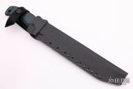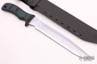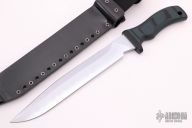 This Voodoo Path by MadDog Knives features a double edged blade with .250" stock. 1.431" blade depth. Selectively tempered, the knife has a Rockwell C-scale hardness of 62 at the edge (as hard as a file), and HRC 50-54 throughout the spine and hidden full tang. Hard chrome blade finish. With "Mad Dog" on the blade. The black/green G-10 handle is designed to be ergonomic and has the ability to withstand tremendous punishment with little or no damage. It is hard and tough enough to be used as an impact tool. Includes a ATAK Combat sheath. New from maker.