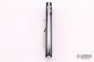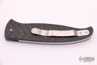 This L22 Linerlock by Andre Thorburn features a hand rubbed satin finished blade with a single thumbstud. The handle has carbon fiber scales, anodized titanium liners, stainless steel backspacer and tip up stainless steel clip. Nice detent, lockup and blade seating. Has a few light scratches, otherwise excellent condition.