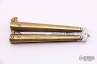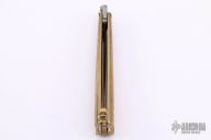 This Balisong by Audra Draper features a nice Damascus double edged blade, forged by Audra herself. Has engraved brass blade stops. The handle has brass handles with fileworked screws and engraved latch. Has a few light scratches and some patina, otherwise excellent condition.