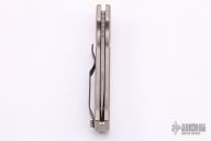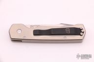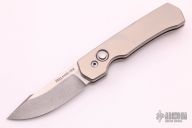 This Prototype Auto by Brian Fellhoelter features a two-tone blade with satin flats and tumbled grinds, notched thumbrest. The handle has a satin finished titanium frame with tumble finished edges and a tip up black stainless steel clip. Dated 2014 and 1 on blade. Comes with a zippered case. Has a couple scratches, otherwise excellent condition.
