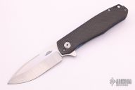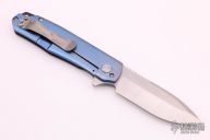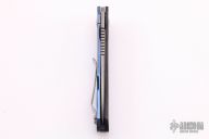 This Flare flipper from Jesse Jarosz features a two-tone finished, AEB-L blade with stonewashed flats and satin finished grinds. The handle is made up of a contoured carbon fiber scale on the presentation side and an orange peel finished, anodized titanium scale on the rear. The pocket clip is stonewashed and positioned for tip up carry. Black G10 backspacer. Blade is centered when closed, flips well, has a little lock rock, excellent condition otherwise. Comes with a zippered case.