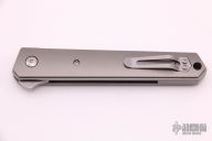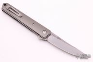 This Burnley Designed Kwaiken flipper (#0584) has an up-swept stonewashed blade with swedge and IKBS bearings. Has titanium scales and stainless steel liners. Tip up carry clip and lanyard hole. Great detent, lockup and blade seating. Excellent condition. Comes with original box.