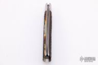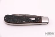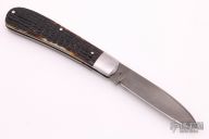 This Zulu Spear by the Late Tony Bose features gun blued blade with nail nick. The handle has stainless steel bolsters, jigged bone covers with stainless steel escutcheon, stainless steel liners and springs. Comes with a Bill's velcro case. Excellent condition.