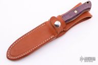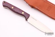 This Fox River EXT-1 LT by Bark River Knives features a satin finished blade with .124" blade stock and 1.045" blade depth, full tang construction. The handle has Royal & Gold flecked burlap micarta scales with yellow liners. Comes with a brown leather sheath and original box. Excellent condition. 1st Production Run