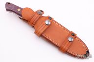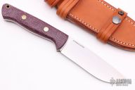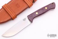 This Fox River EXT-2 by Bark River Knives features a satin finished blade with .147" blade stock and 1.260" blade depth, full tang construction. The handle has Royal & Gold flecked burlap micarta scales with red liners. Comes with a brown leather sheath and original box. Excellent condition. 1st Production Run