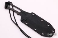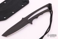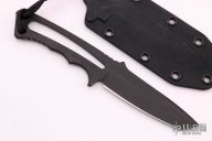 The Professional Soldier is a collaboration with designer Bill Harsey. Has a black PVD coated blade and handle with notched thumb rest and finger grooves, .165" blade stock and 1.100" blade depth. Comes with a kydex sheath. Has a couple very light scuffs, otherwise excellent condition.