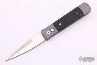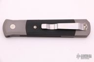 This Godfather from Pro-Tech knives features a satin finish spear point blade with swedge. The handle has a special gray aluminum frame with black G-10 scales, stainless steel tip up pocket clip. Great blade seating, action and lock up. Has a couple light scuffs, excellent condition. Includes original packaging.