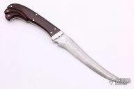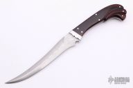 This Knife by James Porter features a Damascus blade with bolsters and a full tang construction.  .151"Blade Stock.  .998"Blade Depth.  The Handle features Cocobolo wood scales.  Stamped M.S. 067.  This knife was made in 1992 according to the consignor.  Includes a padded zippered case.  Excellent Condition.