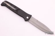 This Militia Auto by Rob Dalton features a bead blast finished blade and a black anodized aluminum frame with safety. Titanium clip, tip up carry. Powerful coil spring action. Has a few light scuffs, otherwise excellent condition. #20094