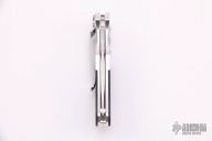 This 3150 Impel Automatic by Benchmade features a drop point blade with swedge. The handle is comprised of an aluminum frame with black G10 overlays. Push button and sliding safety on "A" side of handle The polished steel pocket clip is positioned for tip down carry. Excellent condition. Includes box and drawstring pouch.